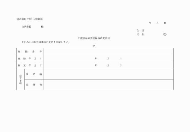 2 条例第9条の規定による印鑑登録証の登録番号が判読できなくなった旨の届出は、印鑑登録に関する申請(届)書によるものとする。