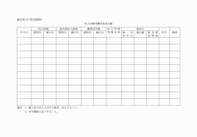 (1) 収入印紙等購買基金台帳(様式第1号)