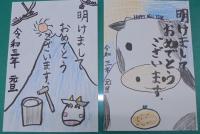 あけましておめでとうございます。12月の土曜授業の振替を年明けの5日にした関係で,子どもたちの登校は,明日6日になります。学校には,昨年末に書写の時間に仕上げた年賀状が届きました。文をしたためることが少なくなってきている現代ではありますが,文面や添え書きから,その人の思いや気持ちが伝わってきます。こうした文化をこれからも大切にし続けたいと思います。明日からの学校生活に向け,様々な準備がされています。ランチルーム前の黒板には,お節料理に込められた願い,お雑煮の文化の違いなどが紹介されています。東海地方は,角餅で,しょうゆ味ベースのすまし汁仕立てが多いのではないでしょうか。12日の給食では,白玉雑煮,松風焼きが出ます。