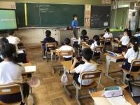 1年生:体育館へ行っていました。空き教室なのに、机の整とんがすばらしかったのと、次の学習の準備がしっかりできていることに感心しました。お見事です。