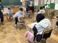 1年生 冬休みに必要なプリントを配っていました。袋の中にはどんどんとプリントが入っていきます。お休みの子のプリントは、近くの席の子がていねいに袋にいれていました。仲間を大切にする温かい姿です。