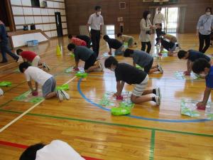 4~6年生が、消防署の方などに指導していただきながら、心臓が止まってしまった人への手当てのしかた(心肺蘇生法)を学びました。一つ一つの手順を丁寧に説明していただきながら、模型を使って実習しました。