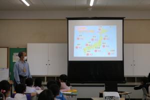 4年生が山県市役所市民環境課主催のカーボンマイナスチャレンジで地球温暖化について学習しました。
