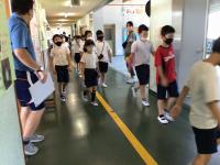 1階に教室があるたんぽぽ学級と2階に教室がある1~4年生が3階へ避難をする訓練です。各学級で水害について担任の先生から話を聞き、訓練に臨みました。どの学年も真剣に取り組みました。